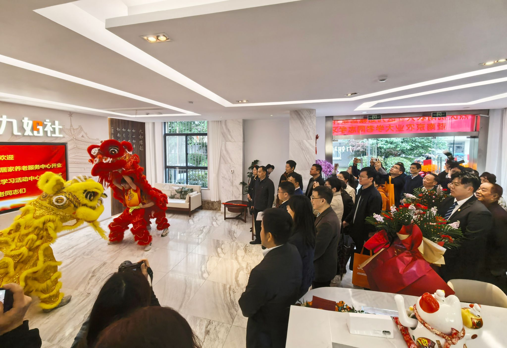 仪式在南农大社区居家养老服务中心多功能室举行。中共南京市委老干部局、玄武区民政局、孝陵卫街道、九如城集团相关领导,学校离退休工作领导小组成员单位负责人、学院退休党支部书记、老年群团负责人及老同志代表参加开业仪式。