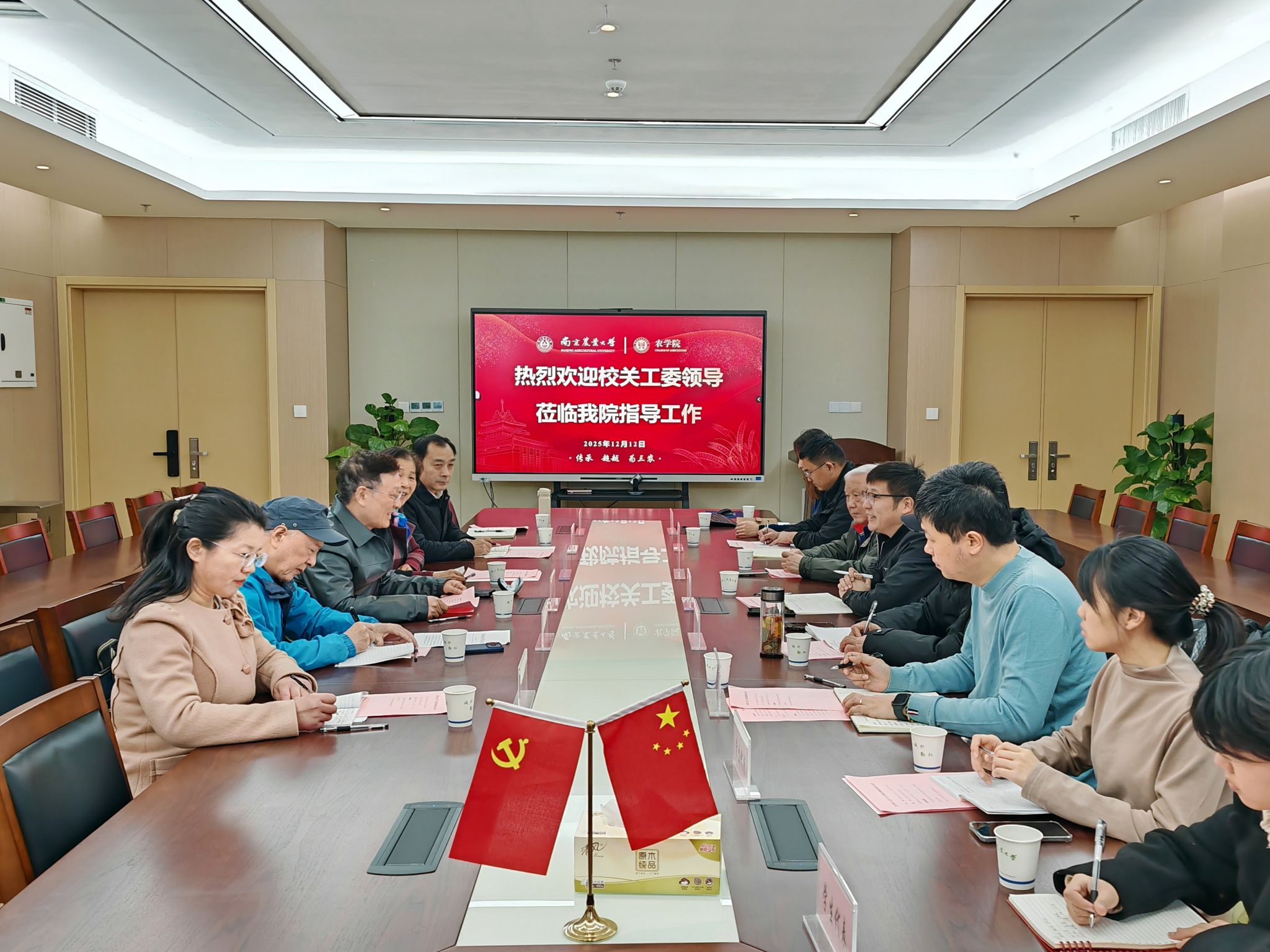 为深入贯彻落实中办、国办《关于加强新时代关心下一代工作委员会工作的意见》及教育部党组部署要求,扎实推进基层“五好”关工委建设,全面掌握试点进展、精准指导特色发展,12月12日与15日,校关工委常务副主任盛邦跃率队,对入选第二批“五好”关工委建设试点的农学院、资源与环境科学学院、动物医学院、金融学院进行集中调研。校关工委副主任贾翠芳、张维强,离退休工作处党总支书记、处长、校关工委秘书长钱德洲,离退休工作处党总支副书记、副处长、校关工委副秘书长卢忠菊,关工委事务主管雷翊参加调研。各学院党委书记、关工委主任,副书记、关工委常务副主任,“五老”及师生代表参加了座谈。
